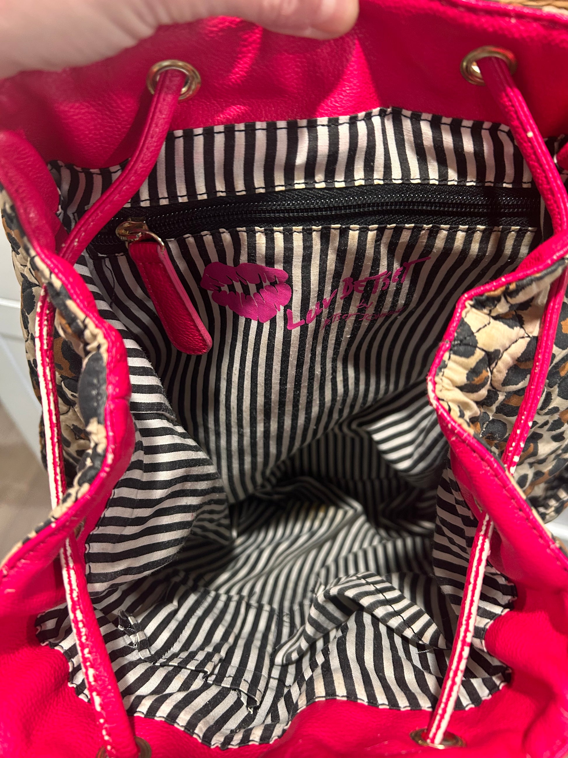 Unleash your inner wild child with the Betsey Johnson Leopard Backpack! This fabulously fierce bag combines adorable leopard print with a splash of hot pink (because why not?). With plenty of pockets to stash your treasures, you'll be ready to prowl through life's adventures—looking stylish every step of the way!