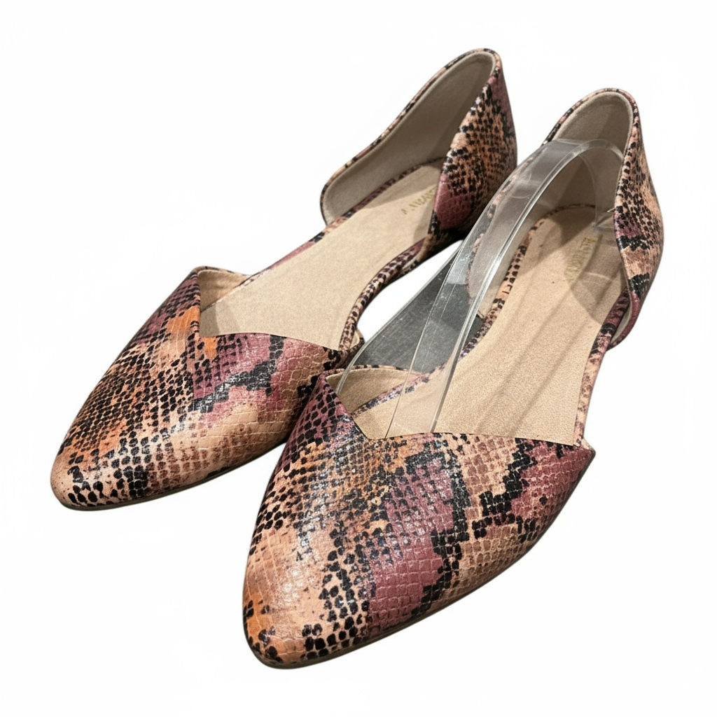 Slip into effortless style with these snake skin printed flats. Featuring rich fall tones that complement any seasonal wardrobe. The sleek reptile print adds visual interest while the flat sole keeps you comfortable all day long. Perfect for pairing with dresses, jeans, or skirts.